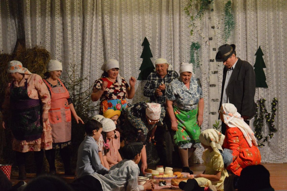 Абдуллинский сельский клуб показал театральное представление - праздник поднятия дома "Ой кутәру". Представление разбавили башкирскими народными танцами и песнями, на сцене дети играли в разные игры.